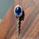 いぶしたシルバーと、独特のブルーが映えるカヤナイトのブローチ。