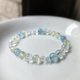 ◆這條手鍊的色調溫柔,有一種「早春的光」感覺——像是晨霧剛散、空氣裡帶著花香與微光的清新。粉晶的柔、海藍寶的淨、葡萄石的青潤、白幽靈的透明,整體給人一種心慢慢被打開、重新呼吸的平靜感。