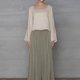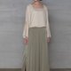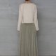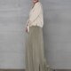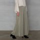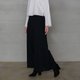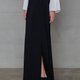 從容不迫的寬褲剪裁,以俐落筆直的打褶線條作為整體視覺中心,呈現具有份量感的寬襬輪廓;黑色選用略帶垂墜感的精緻面料,灰綠色選用絲光精緻面料;側邊開衩在動靜之間隱約展露腿部線條,讓優雅迷人的身形展露女伶般的自信風采。