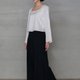 柔軟飄逸的寬管褲,前、後片俐落筆直的打褶線條是整體的設計重點,側邊開衩隱約展露腿部曲線;自然垂墜的精緻面料提升整體質感,搭配軟質襯衫或罩衫,充滿法式優雅浪漫。