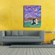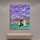 貓畫貓牆藝術天空繪畫動物繪畫夜空牆壁裝飾。