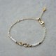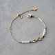 - ● 手環採用單邊調節扣環設計,可依自己的手圍大小自行調節 ● 3mm月光石、14K包金配件、14K包金鍊