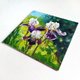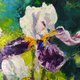 - The painting Iris is the original painting. Completely handmade, oil painting with flowers, painted from nature. The size of the painting with flowers is 20 by 20 cm. The iris painting is painted on primed canvas on panel. The picture Iris is completely ready, sold unframed.