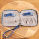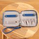 シックなグレージュに、落ち着いた青を差し色にしたバイカラーデザインのアクセサリーポーチです。