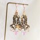 材料:粉紅晶石S925防敏感耳釘、金屬鐵鏈、電鍍金屬片、小水滴珠