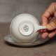 杯組由德國名瓷獅牌Hutschenreuther於1948年至1970年之間製造,帶有精緻的茛苕葉圖騰與描金設計,茛苕葉代表了 藝術與智慧,是西洋裝飾藝術中最常用的圖案,源於古希臘羅馬的建築圖騰,這種捲曲柔美的紋樣也被認為是高貴優雅的象徵,發展至今被廣泛應用在各種西方物品的裝飾!