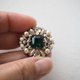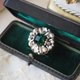 - 復古風格胸針。採用祖母綠玻璃水鑽、玻璃珍珠和珠子手工製作。