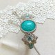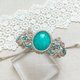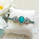這顆是產自莫桑比克的天河石,擁有獨特的白色紋理,以及冰透沁人的藍綠色澤。