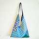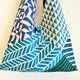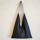 使用日本進口印花棉布,搭配牛仔布素面不同效果的三角形手提包,可雙面使用,造型時尚具有設計感!