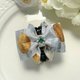 使用高單價的美國品牌棉布、加工製作出帶有立體感的蝴蝶結抓夾;蝴蝶結造型簡單、卻因為少見的素材而不會到處撞款。