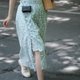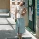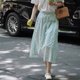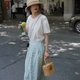 和奶杏色的植物印花T或者白色泡泡袖T恤搭配