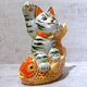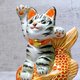 九谷燒招財貓以細膩的灰色條紋描繪,展現出優雅而生動的招財貓形象。