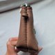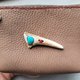 鹿の角根端部から削り出したとんがり部分に、カンピトスターコイズを埋め込み、縫い付けて留めています。