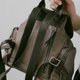 Supportingrole簡約時尚翻蓋真皮磁扣束口後背包 灰咖啡