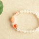 本商品精選天然南紅冰飄意境珠,冰飄珠為荔枝凍冰底,清澈透亮,晶瑩如冰,底色純淨,如同冰裡飄散著一層輕霧。透光可見熒光明顯。剔透的質地上水墨畫般的南紅紋理,隨性自然,俊秀飄逸,意趣天成。如同清新淡雅的水墨畫,透光觀察,水波光影,紅色瀲灩,如果遇到有紋理映襯,更是波光粼粼。真是一珠一世界,一花一菩提。在紅色紋理的映襯下,冰底也彷彿披上了一層淺紅的輕紗,染上了淡淡的紅暈。周圍圓珠嚴選天然南紅荔枝凍圓珠。荔枝凍顆顆圓潤,水潤冰沁,質感瑩潤,冰透且有較強膠凝感(果凍感)。透光看可見熒光明顯。透光彷彿有霞光慢慢沁染了珠子裡的云朵,更彷彿有小小的太陽急欲穿透云層,美麗分明。搭配天然瑪瑙趴趴兔雕刻件。胖乎乎,肉嘟嘟,線條簡練流暢色彩自然清淺柔和。整款手串清新淡雅,雅緻可愛,清爽恬淡。
