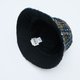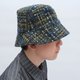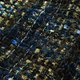 由訂製羊毛粗花呢與色紗編織製成,內夾金絲線與藍色羊毛絨,與光折射時較為閃耀。