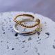 透過波浪與圓珠的層疊設計,打造出簡約卻不失高雅氣質的戒指。