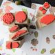 松ぼっくりやどんぐり、木の実や葉っぱも色を変えて押せる、