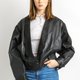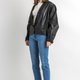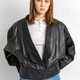 Leather Moto Bomber Jacket Women Vintage 80s Bomber Biker Jacket Black Motorcycle 80s Grunge Jacket Black Leather Jacket Size Medium. Fastens with 1 button at the bottom. Free waist, lined. 2 side pockets. Long sleeves. Oversized, relaxed fit. Tag size 40, but fits S-M. Our model is a size S. This top would fit a size S-M depending on your desired fit. Can be worn more oversized or fitted. Please see sizing and care tab for further measurements.