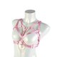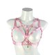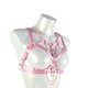 Pink harness top is made of luxury elastic straps with satin finish and silver hardware. Decorated with chains. Can be adjusted for a perfect fit.
