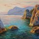 Enrich your home with elegant beauty with our oil painting depicting a breathtaking sunset in cliffs in the sea. This work of art recreates the beauty of nature, making you feel the fresh sea breeze and the sounds of the surf.