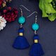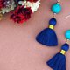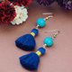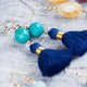 ●Featuring vivid green-blue Turquoise stones and plush cotton tassels, 14 Karat gold plated earring wires and findings