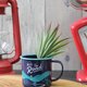 杯身上印有Hit the road的文字。Hit the road 你可能以為是「撞馬路」或「打馬路」的感覺,但其實是「出發」、「啟程」的意思,搭配著把手藍色線條點綴,更顯得這個杯子與眾不同。
