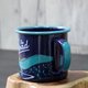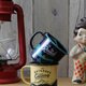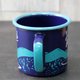 本商品是戶外系列的琺瑯杯之一,本商品的杯身透過不同深淺的藍色勾勒出一幅美麗的圖案,在杯子正反面都有人沿著山路在騎腳踏車,不同的是,一面是往山上騎,一面是往山下騎,十分有趣!