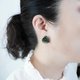 TAGAKU原創設計,使用來自日本岐阜縣的傳統工藝「美濃燒」瓷磚,表面為閃耀神秘光澤的黑珍珠色。不對稱的花形與水滴形設計,展現個性與優雅。接觸皮膚的背面以天然植物鞣皮革(ヌメ革)手工處理,溫和親膚,長時間配戴亦舒適。