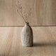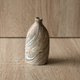 黃陶,信樂土和瓷土經過練土、混土、拉坯、修坯成形,完成攪胎作品。每一件攪胎作品都有不同的紋路。沒有上釉的抷體在經過釉燒後,再經過研磨,讓使用者能夠觸摸到陶土的肌理。這件作品使用還原瓦斯窯燒製。燒成溫度為1240度。抷體内部釉藥因爲陶土内含的鐡成分,經過還原後燒成鐡斑青瓷。