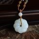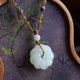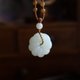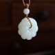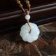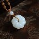 天然和田玉羊脂玉絞絲扣吊墜,玉料選自新疆且末老料,白潤細膩,以傳統絞絲工藝雕琢,線條如絲纏繞,寓意福源綿長,搭配精美手工和田玉糖料繩,墜尺寸約23.8×11.8mm