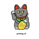 招財貓(招き猫) 短袖T恤 灰黑貓 白t-shirt
