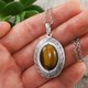 Oval Photo Locket Necklace with mustard yellow brown tiger eye stone.