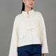 這款短款唐裝外套採用超舒適的駱駝毛與頂級美利奴羊毛混紡材質,帶來極致的舒適與溫暖。寬鬆的短款剪裁設計,配備兩個前口袋與傳統盤扣,展現獨特風格。搭配簡約T恤與牛仔褲,輕鬆打造完美的週末造型。