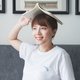祭典貓 未來還未來 - 白 夏祭り Tee T-Shirt  【 情人節 生日 】 - 女上衣/長袖上衣 - 棉.麻 白色