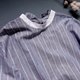 **【 寬領後綁帶落肩長袖上衣/灰底紅白紋 】**