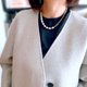 オールノットで繋がれたネックレスは、しなやかにデコルテラインに沿い、パールとパールのほんの少しの隙間が、優しく落ち着いた空気感を作ります。