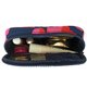 拉鏈完全打開後,前幅插位部分可向外傾斜,物件方便取出。 儘管化妝包尺寸不大,但可容納15厘米長度用具,化妝刷、眼線筆和睫毛膏等。因可反出前幅上半部分,可以一眼看到小袋內部所有物件。 化妝包主體可保持站立式支撐,使用方便。