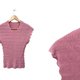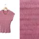 • beautiful Avante Garde 90s Y2K Micro Pastel pink Pleat Plissé Cap sleeve top with textured, stretchy, very comfortable.