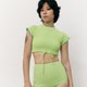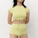 Pang (lime green) is 160 cm and wearing Top size M, Pants size S (Bust 31.5 in / waist 25 in / hips 35 in)