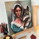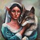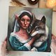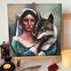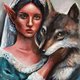 The unique painting of a beautiful elf lady hugging a wolf. Made with professional acrylic paints on a stretched professional canvas. The plot is one of a kind: the revealing delicate balance of wildlife and human society, underlining the idea of people's frugal attitude toward animals, who need more love and freedom. The unique gift for a nature and animal lover, and art lover. Very detailed, realistic, and eye-catching.