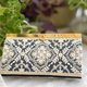 黒サテンに白刺繍を重ねた、華やぎの長財布 No.163