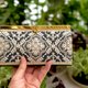 長財布の口は文鎮金具と言われるがま口タイプで、雄側の差込金具を雌穴に通すだけの簡単開閉型になっています。