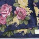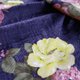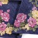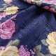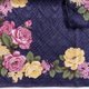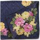 Charming vintage handkerchief featuring bold pink and yellow roses, bloomed on deep blue as border. A delightful balance of playful and classic — soft cotton fabric that adds a touch of British charm to any outfit or collection.