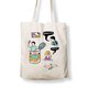 ① 帆布袋材質為 8.3oz 純棉胚布,原麻帆布擁有無標白環保標章,略帶米白並帶有不規則暗紋,此為未染色胚布特性,材質堅韌耐磨。