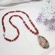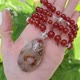 **1.圖上水墨風瑪瑙滾石高約55mm、寬33mm、厚22mm,鍊身紅玉瓍珠約6.2-10.2mm,項鍊總長度(不含滾石墜)約75cm。**