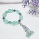 嚴選色度、透度級高之螢石,磨製大器隨型珠型,鍊身佐螢石家族中最為罕見之藍螢石,主飾華美古典流蘇,體現大器富貴、智慧美麗兼備的氣息。