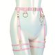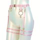 Belt with removable garters is made of elastic strap with satin finish and golden hardware. Decorated with pendants. Can be adjusted for the perfect fit.