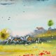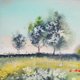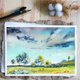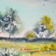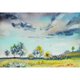 Original watercolor fantasy summer landscape, hand made painted on professional cotton paper.