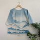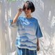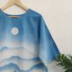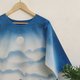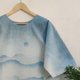 Round neck short sleeves indigo spray top. Handmade one of a kind spray indigo to be mountains nature scenery, lovely design, cool indigo dyed technique pattern.